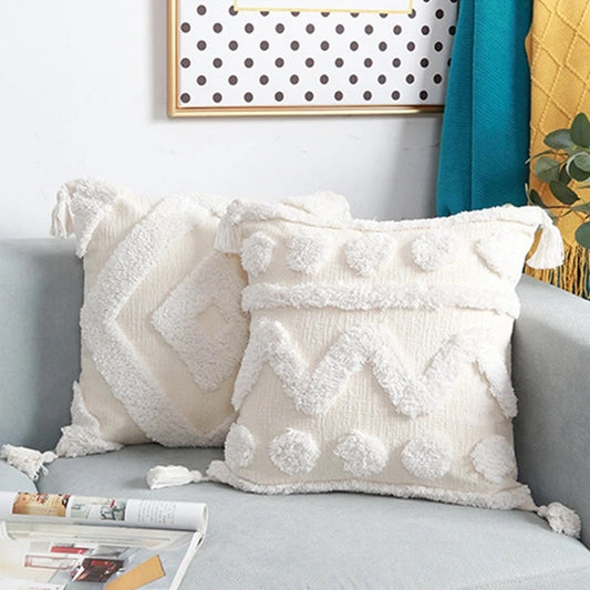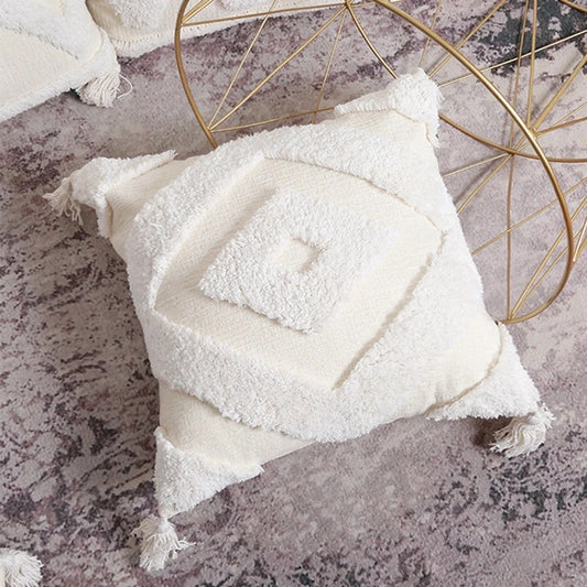 Funda de cojín capitoné con pompón estilo boho/bohemio - Esmé