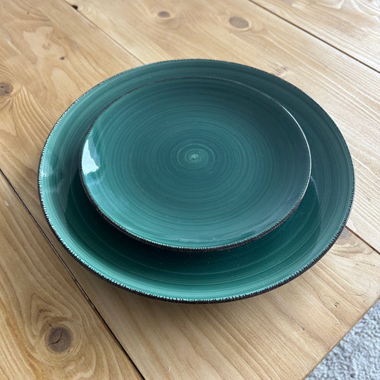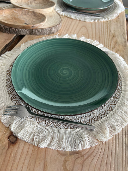Set van 4 grote groene aardewerk borden in bohemian stijl - Lema