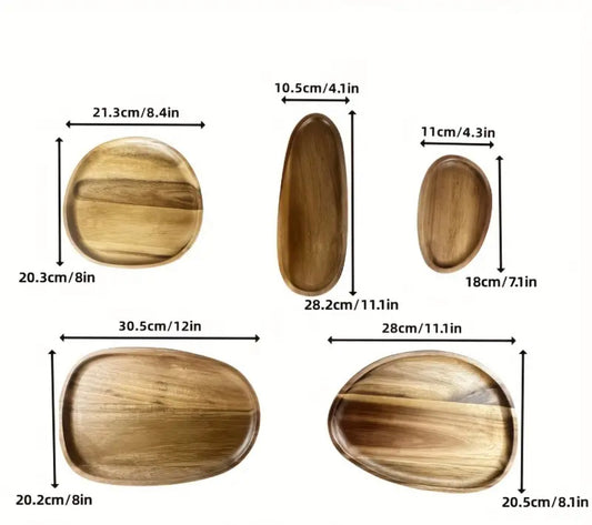 Lot de 4 assiettes en bois massif style bohème - Tiga