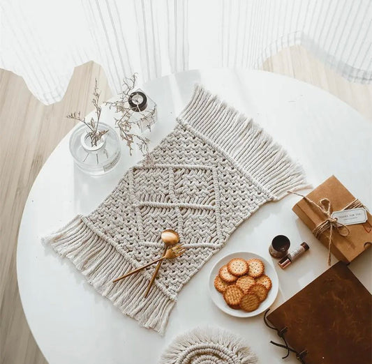 Set van 4 handgeweven macramé placemats in bohemian stijl - Sila