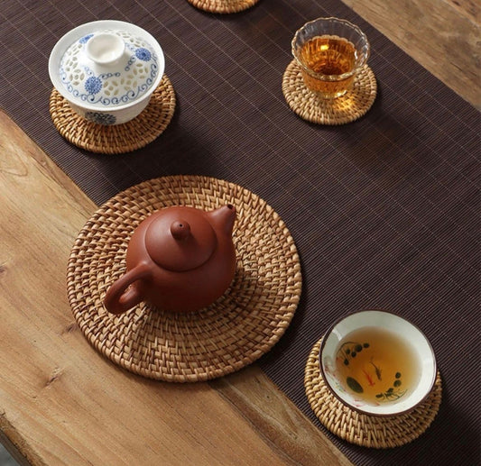 6 geweven rotan onderzetters in bohemienstijl - Mibo