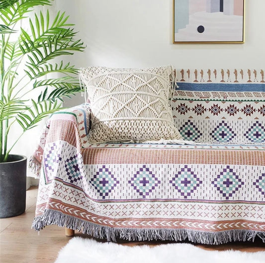Couverture à motifs ethniques 130 x 160 style bohème - Toulaya