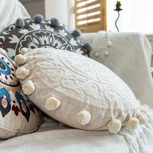Getufte kussenhoes met pompon in bohemienstijl - Laïpa