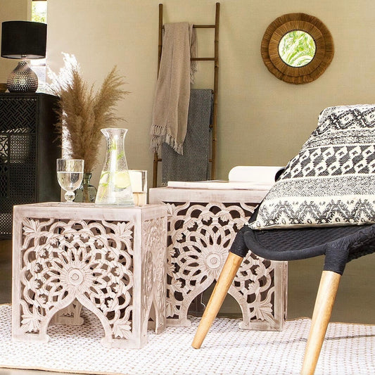 Set de 2 tables d’appoint style bohème - Terre