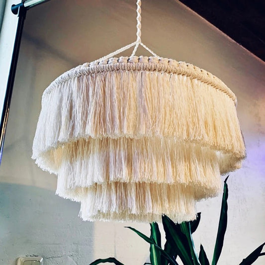 Geweven macramé lampenkap met franjes in Boheemse stijl - Valaya