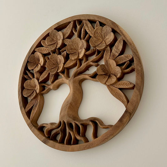 Tableau mural rond arbre de vie en bois de manguier style bohème - Bali