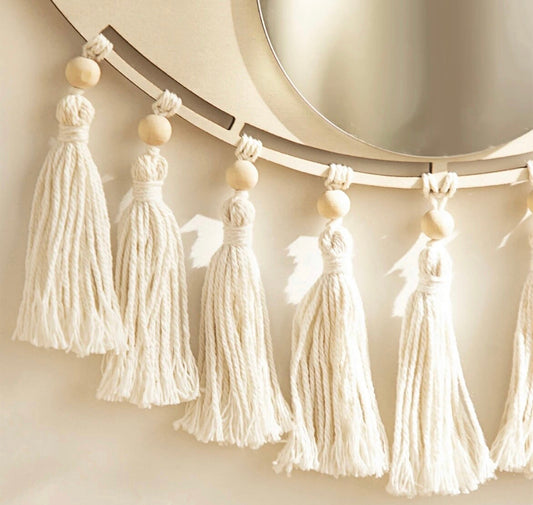 Houten en macramé spiegelwandhanger in Boheemse stijl - Zinda
