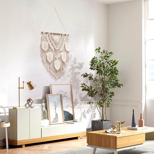 Tenture murale de feuilles marrons en macramé - Jinaya